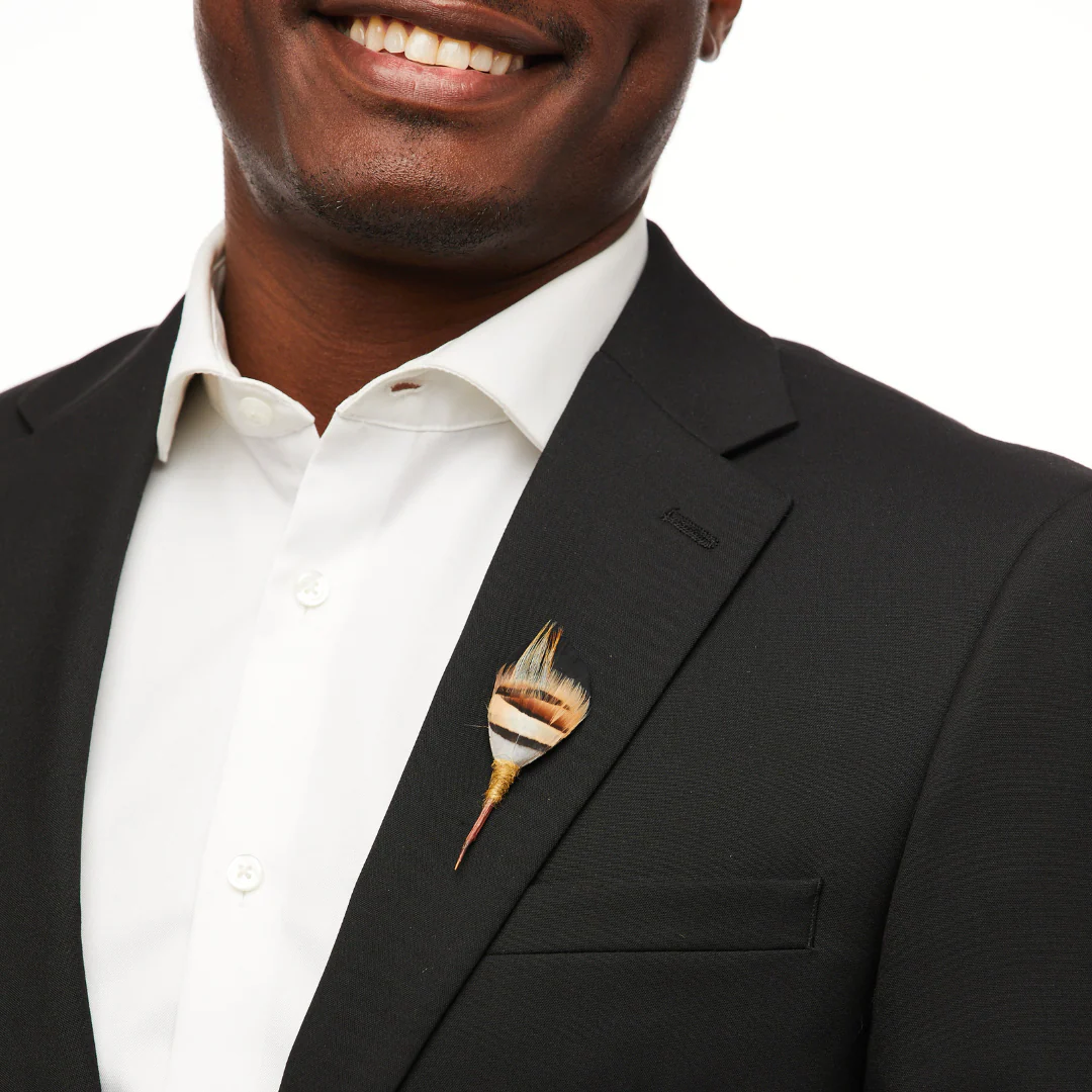 Packaged with CareĀ | Every feather lapel pin comes packaged in a hand-branded, pine gift box.