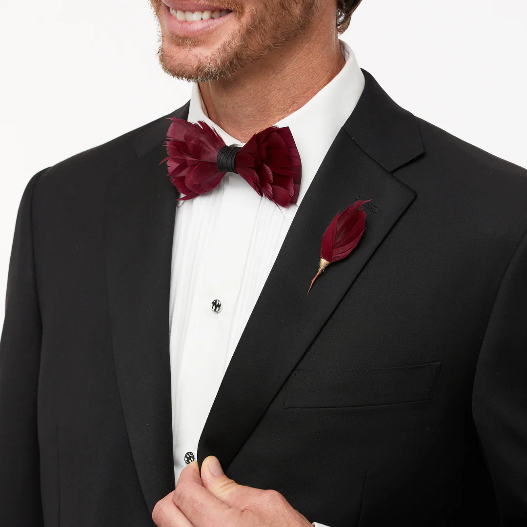 The Story | A part of our inaugural wedding collection, Match Me is named after the horse who took the last place in the 35th running of the Kentucky Derby in 1909. When drawing inspiration for this collection, co-founder Ben Ross was inspired by spring and summer events in which we gather and celebrate together - particularly horse races. Each style in this collection is named after a racehorse whose name isn’t well known in hopes that their legacy will live on. Thorns from wild plum thickets are foraged, dried, and paired with hand selected feathers by our team of artisans to create a one of a kind statement. Each Brackish Plum Thicket Pin is designed to naturally complement our unique line of bow ties, or stand out on its own. They can be worn as a lapel pin, brooch, or hat pin. It's the perfect pairing with our Rosebud Bow Tie.Â