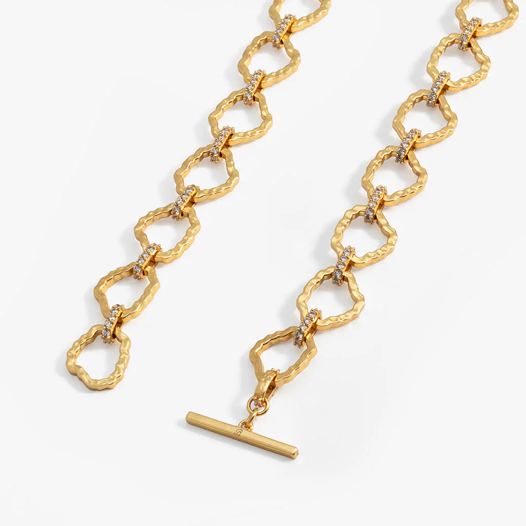 The design draws inspiration from the unique contours of a deer antler’s burr, repeating the organic shape to form a signature chain that is both striking and sophisticated. The cubic zirconia-encrusted links elevate this necklace, making it feel effortlessly luxe and perfect for both day and evening wear.
